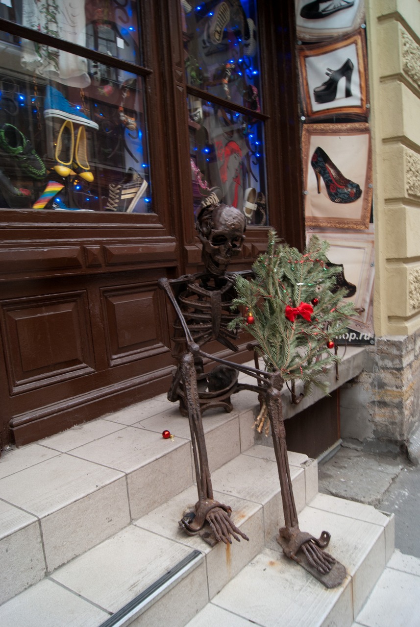 Скелет у у магазина в Банковском переулке