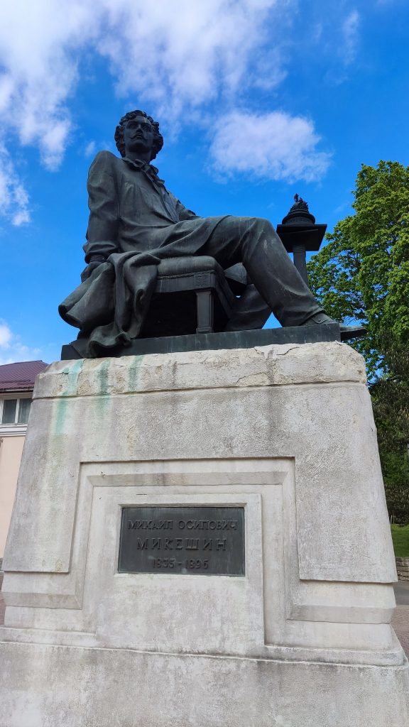 Михаил Осипович Микешин (1835, деревня Максимково, Смоленская губерния — Санкт-Петербург) — русский живописец и график, представитель петербургского академизма, одна из наиболее заметных фигур в монументальной скульптуре пореформенной эпохи. Создатель эклектичных по стилю графических проектов для памятников в ряде городов Российской империи, в том числе знаменитого монумента «Тысячелетие России» в Великом Новгороде; батальный живописец по образованию, также работал как иллюстратор и карикатурист. Академик Императорской Академии художеств (с 1869).