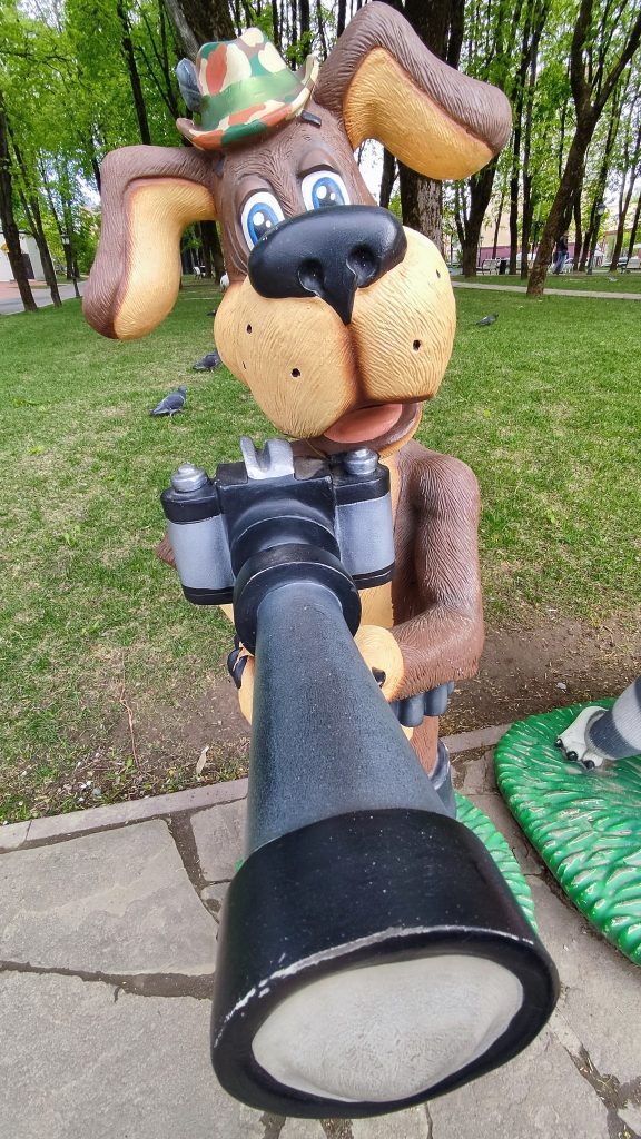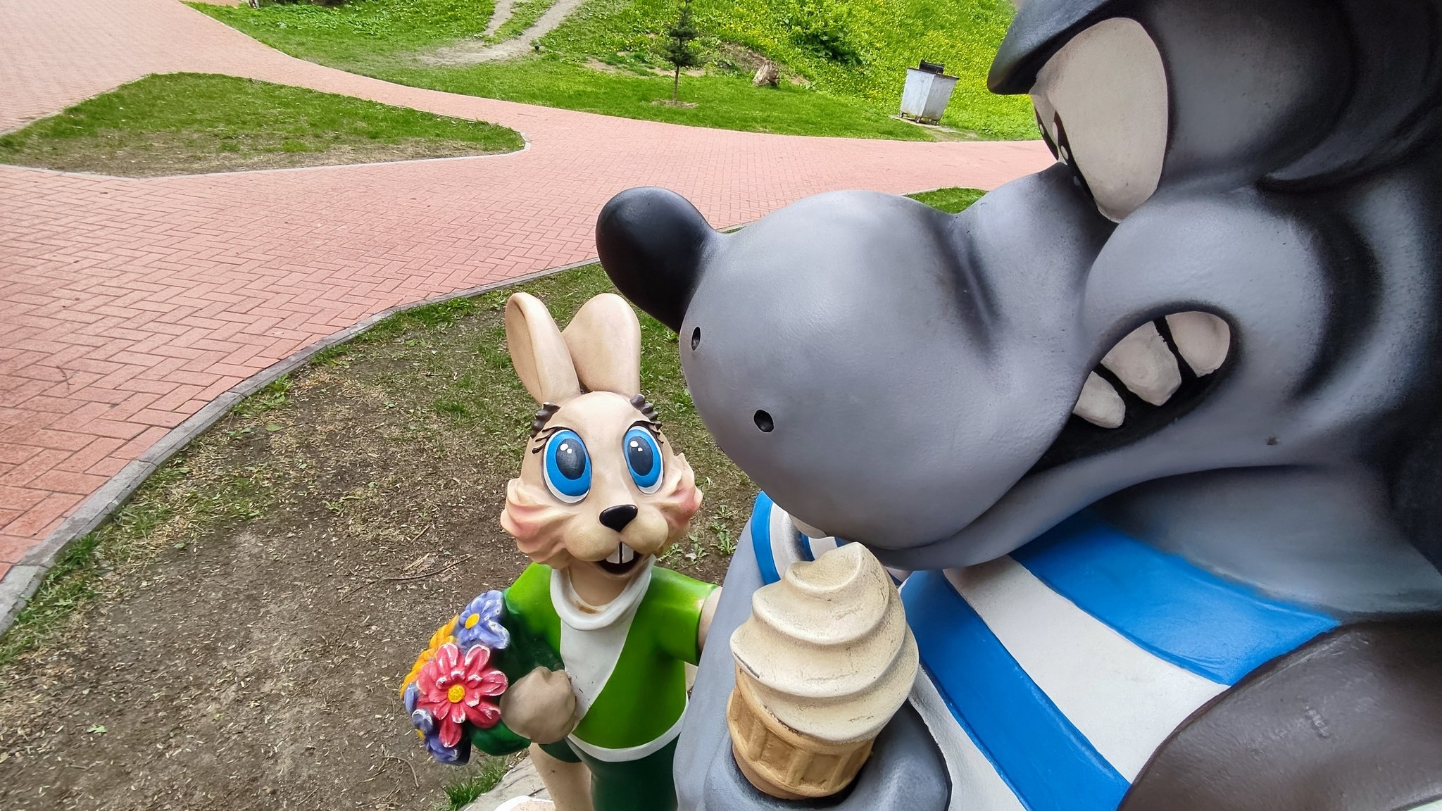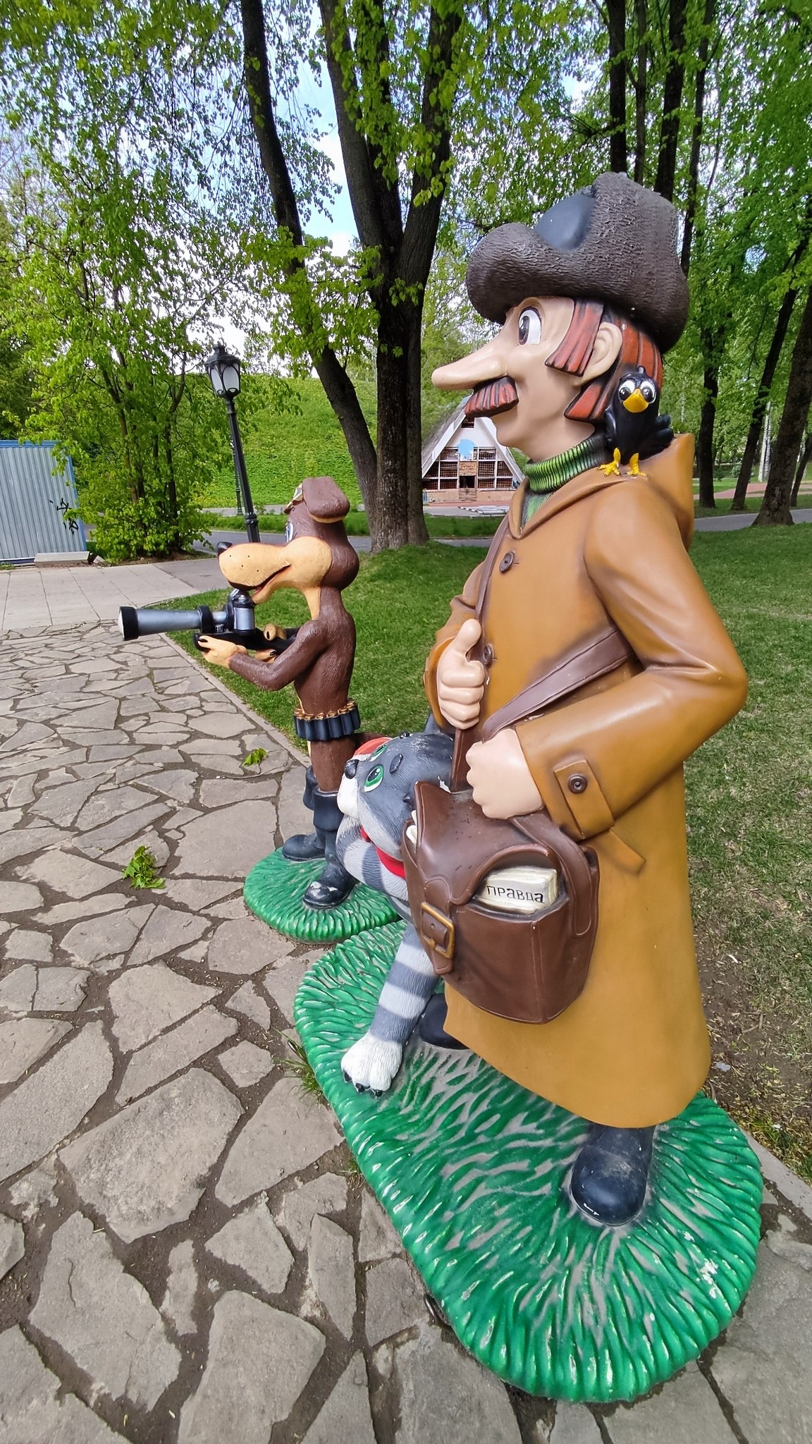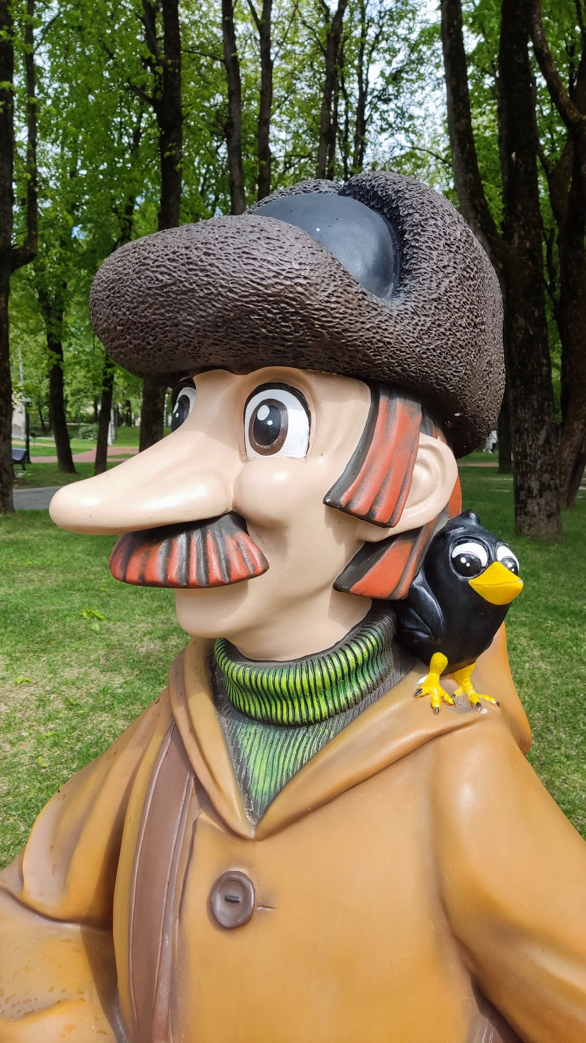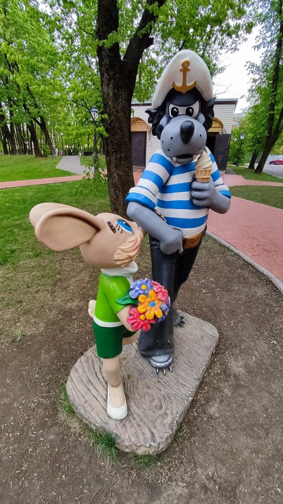 В парке за кинотеатром Октябрь забавные скульптуры мультипликационных персонажей.