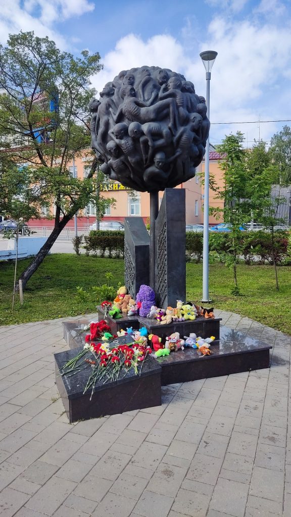 Монумент «Опаленный цветок» в память о маленьких узниках концентрационных лагерей фашизма. Скульптура представляет собой вид шара из сплетенных вместе детских тел, а листья цветка — плиты с названиями концлагерей.