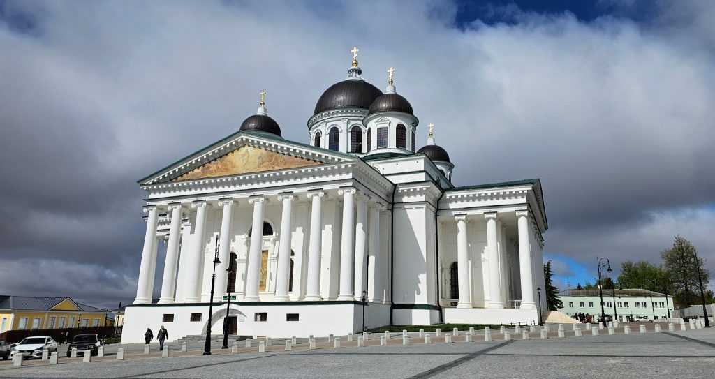 Так же быстренько прошлись утром по историческому центру Арзамаса. Церкви, монастыри и, конечно, Гостиный ряд. Как написано на информационном щите — центр духовной и торговой жизни города в прошлых столетиях.