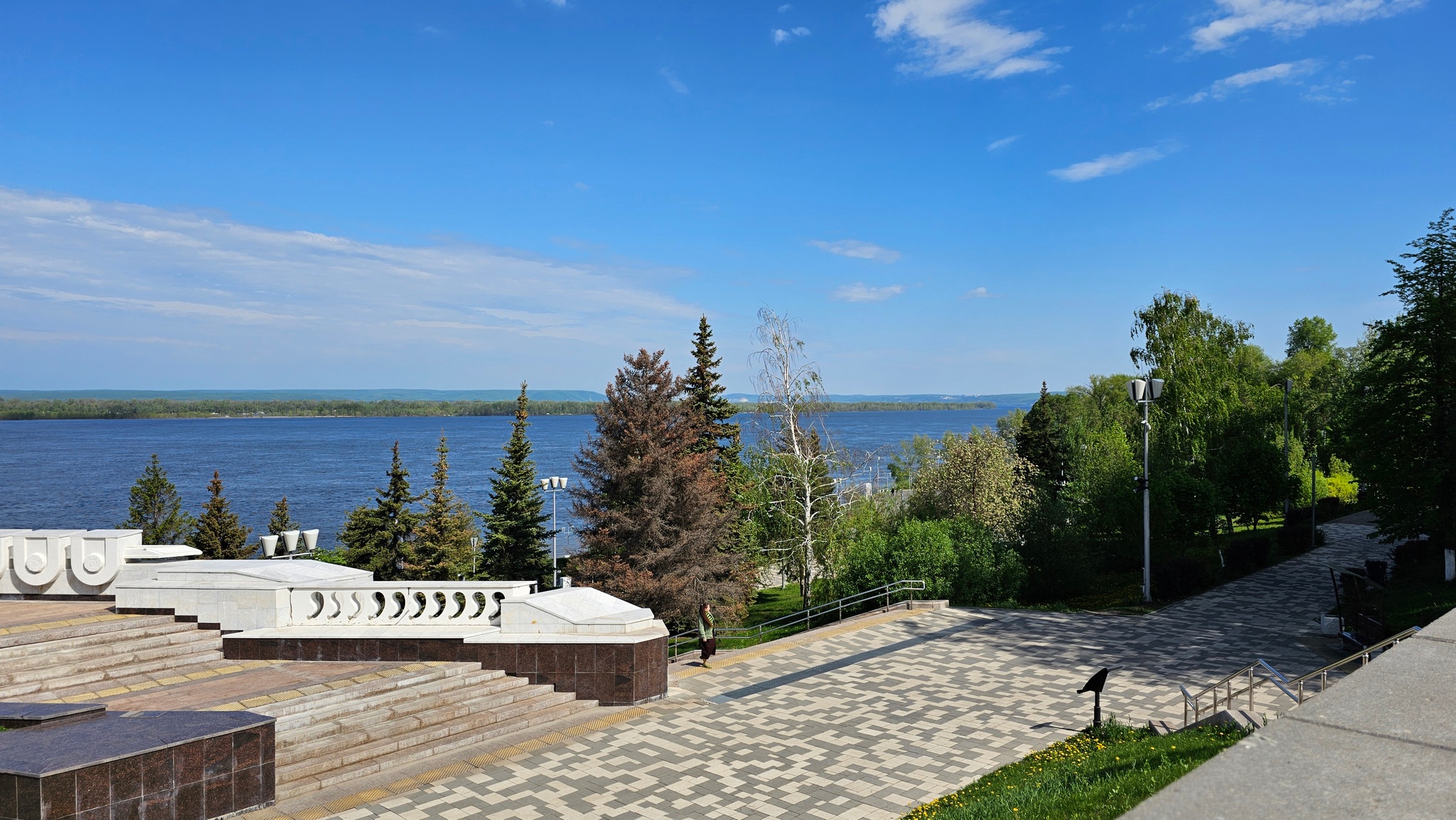 По дороге в Самару посмотрим на величественную Каму с высокого берега. Мощь! Но скоро Волга.