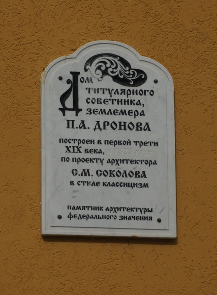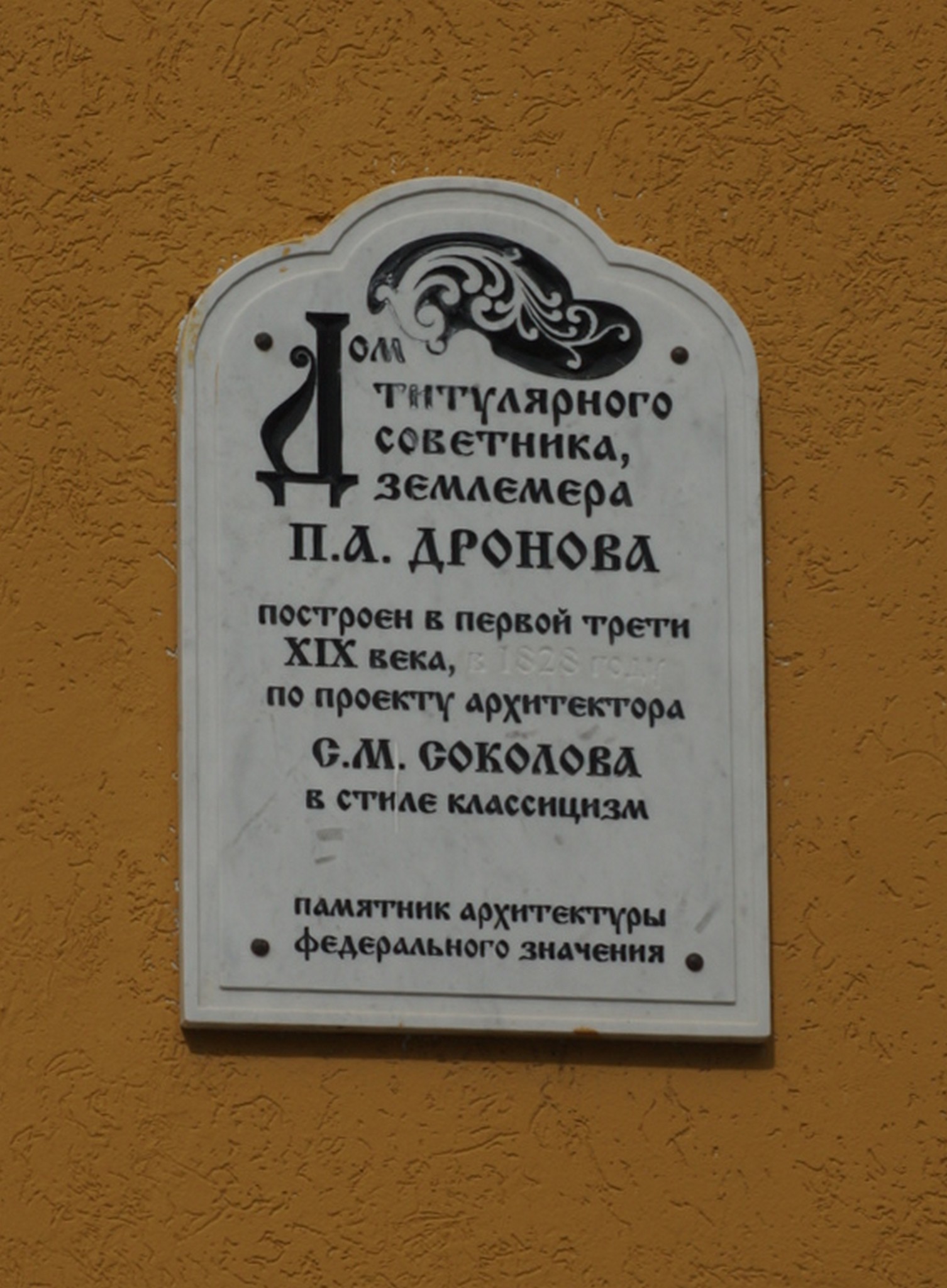 Дом землемера Дронова расположен в западной части Соборной площади, напротив Воскресенского собора. Построен в 1828 г. по проекту архитектора Соколова.