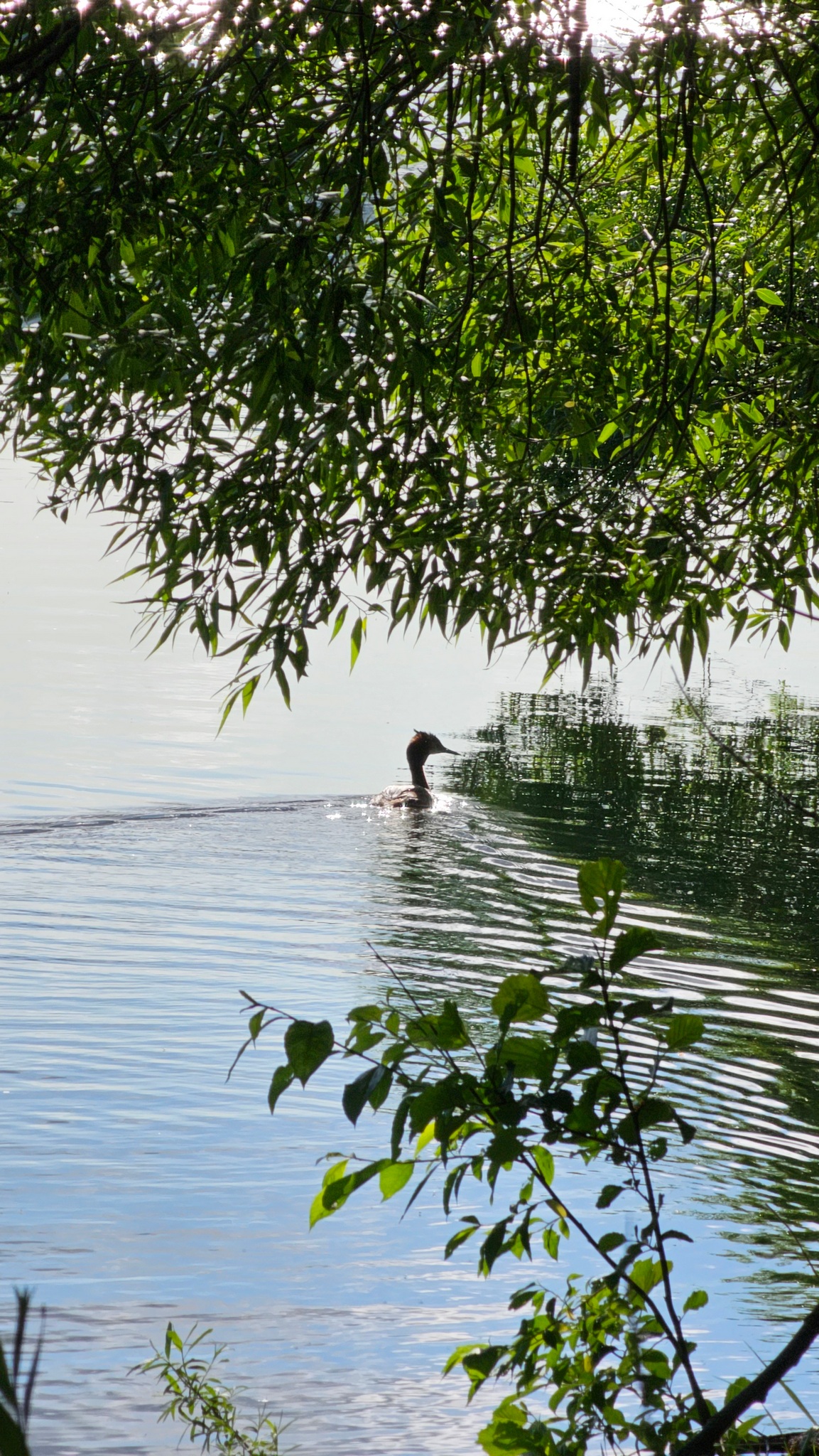 Одиноки родитель прохлаждался на досочке, потом немного поплавал.