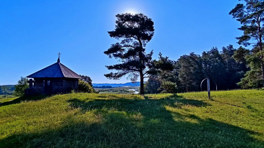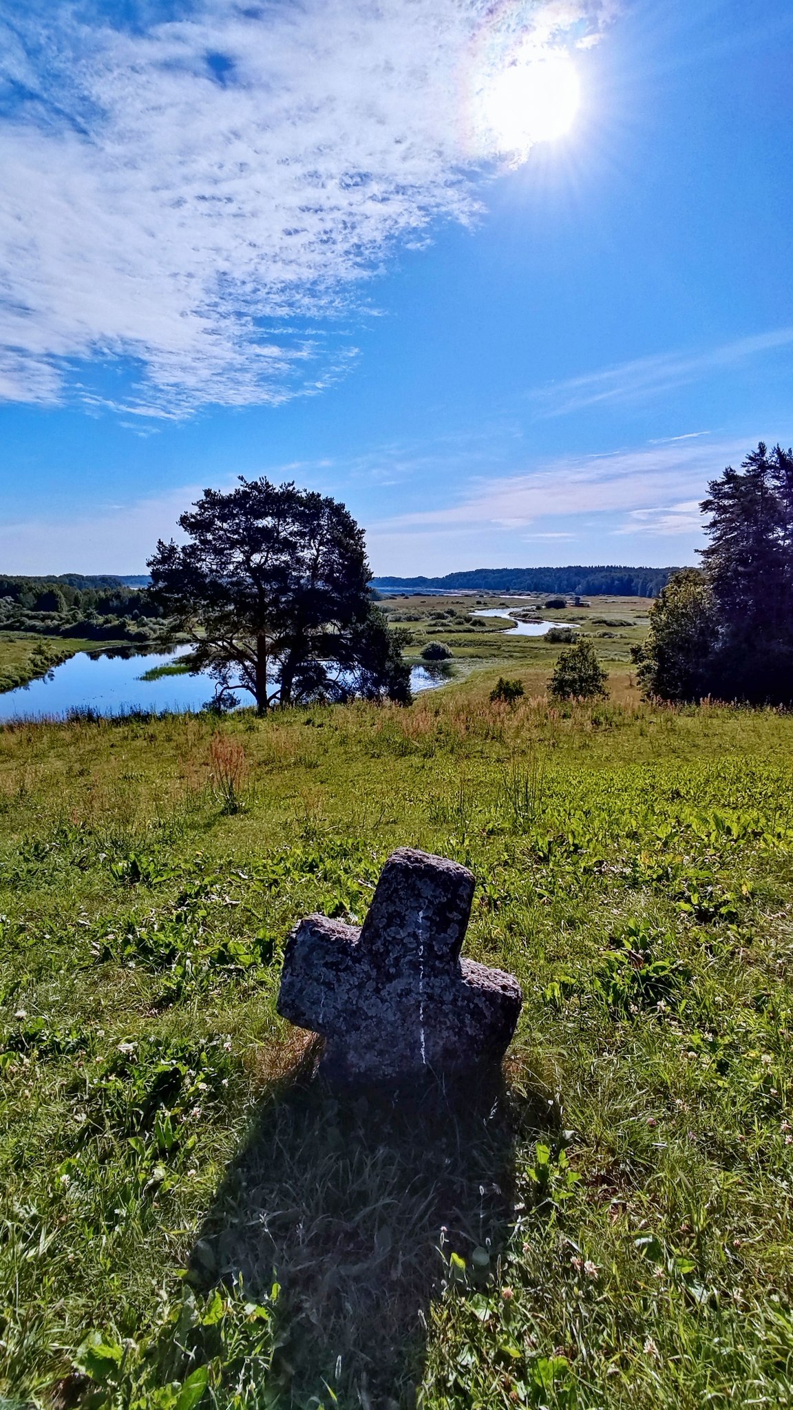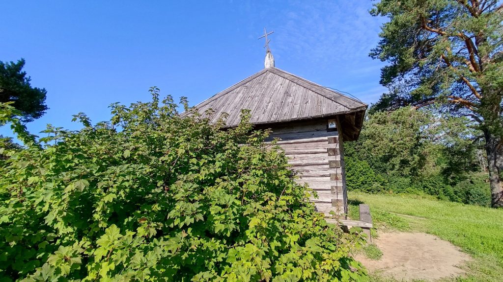 На гранитном постаменте креста, стоящего около часовни, есть церковнославянская надпись: «Лета 7021 постави крест Сава поп». 7021 год соответствует в современном летоисчислении 1513 году. Сам крест, поставленный на этот постамент, родным не является, выполнен из песчаника и установлен в XX веке.