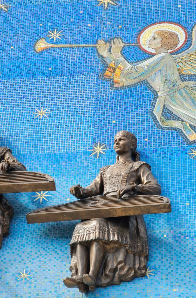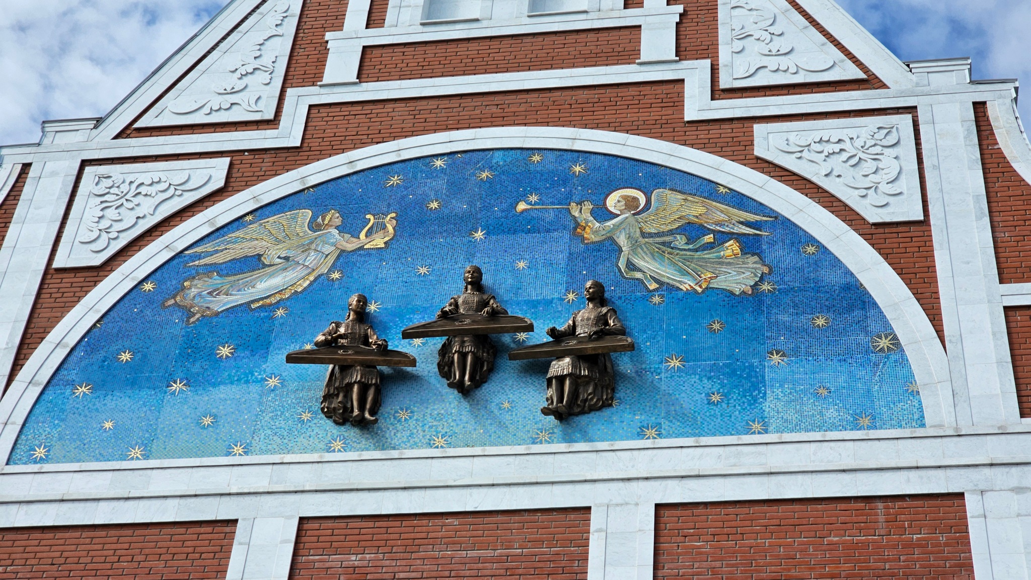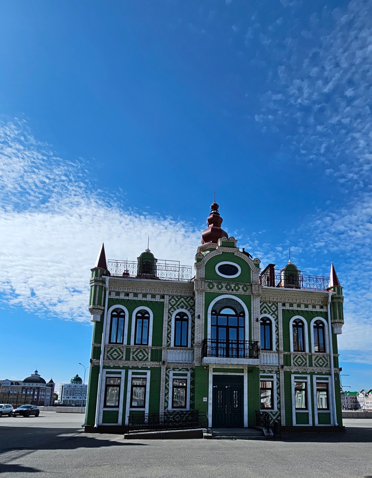 Неопознанное здание, видимо, тоже связано с творчеством. На фасаде — фигурки девушек в национальных косюмах с музыкальными инструментами кӱсле — родственным русским гуслям.