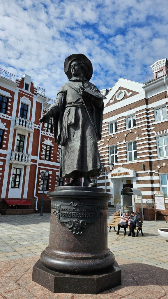 И снова искусство. Памятник великому голландскому художнику «Золотого века Нидерландов» Харменсу ван Рейн Рембрандту(1606-1669) на набережной Амстердам. В Амстердаме (который в Голландии) к Рембрандту пришел успех, финансовые трудности, там он прожил всю жизнь.