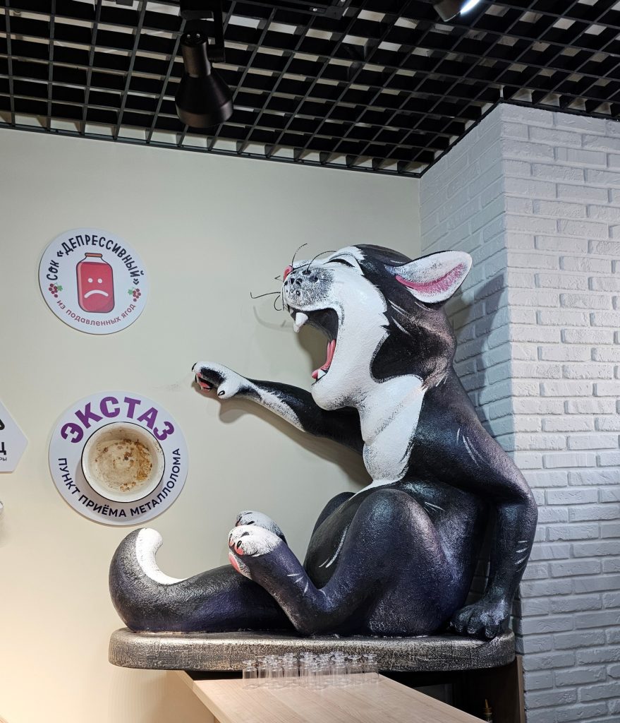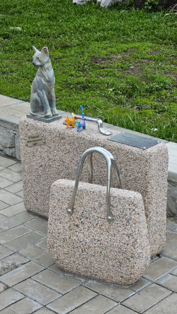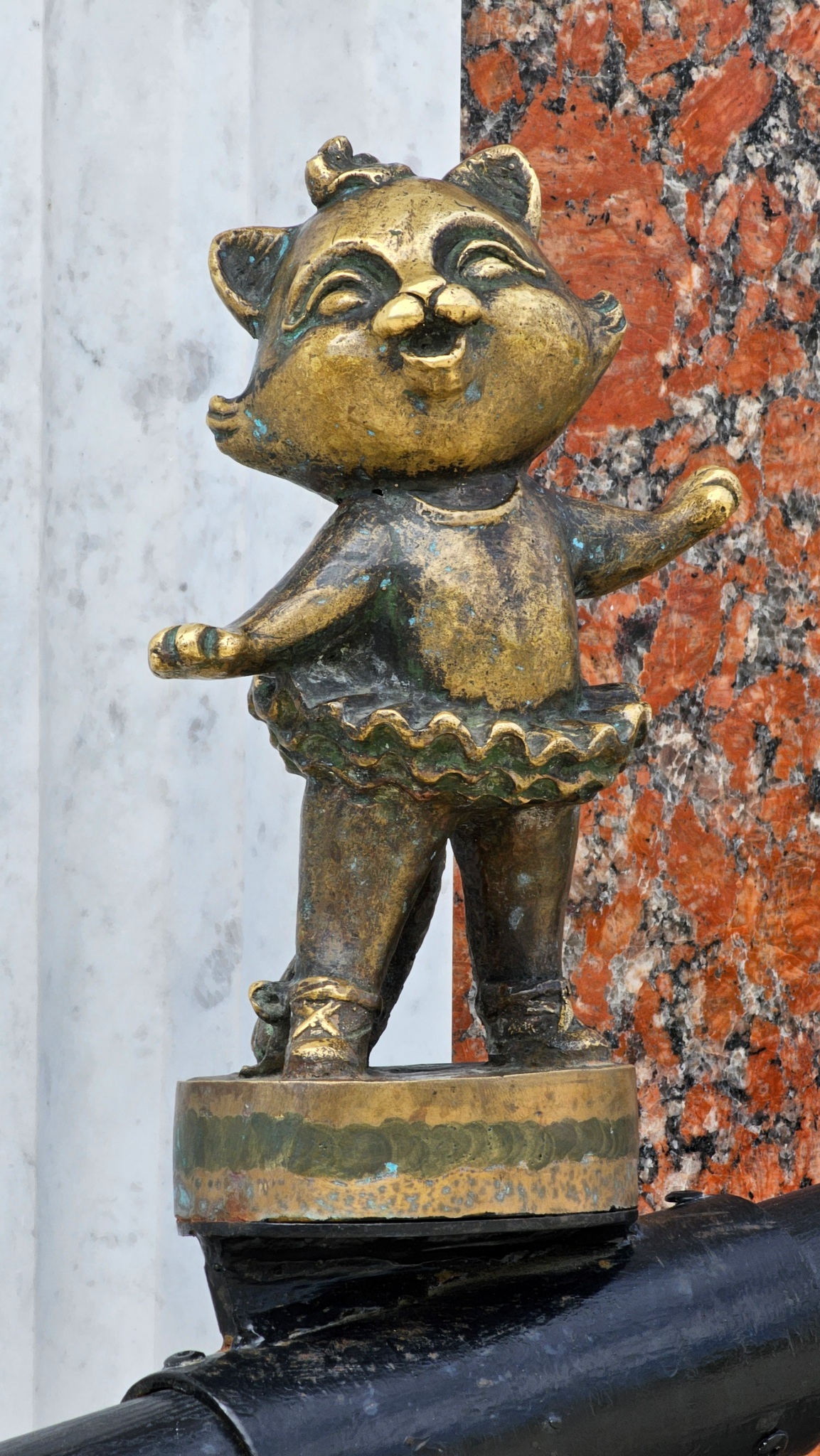 У входа в театр на перилах — маленькая балерина котенок Бусинка из Йошкиной котосемьи.
