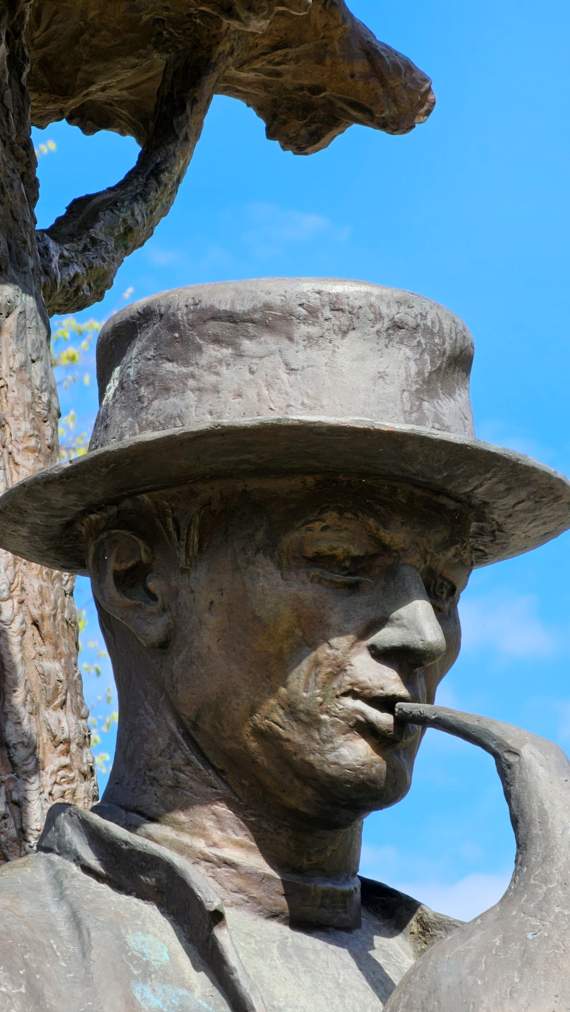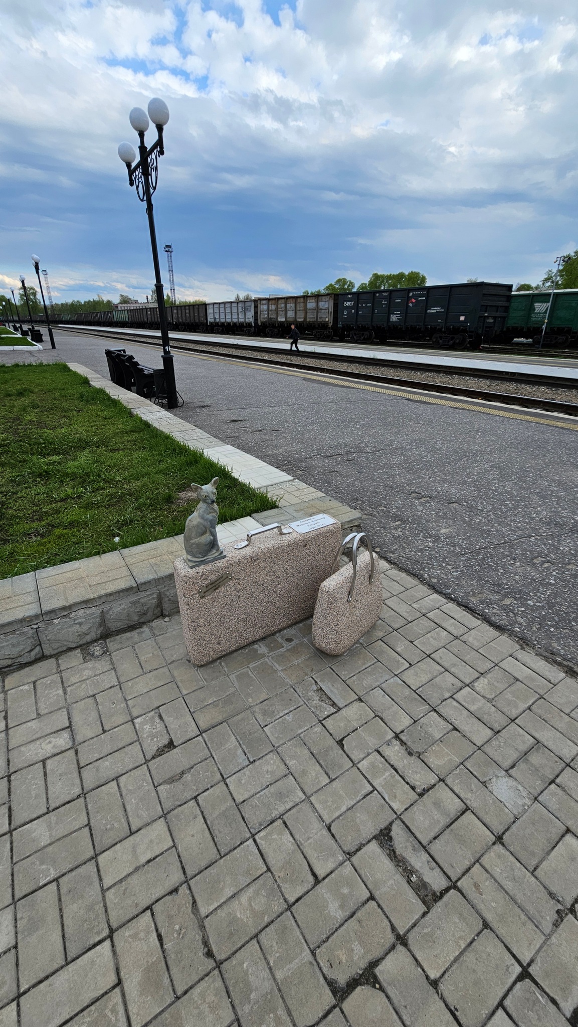 Этот необычный бронзовый памятник, установленный на перроне железнодорожного вокзала, невольно привлекает внимание как приезжающих, так и отъезжающих пассажиров.