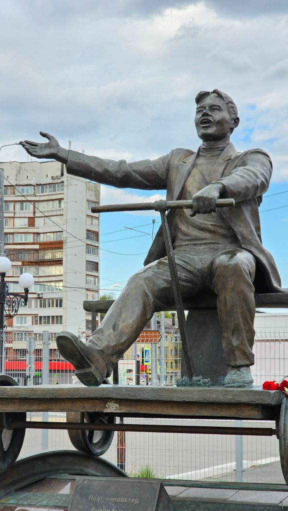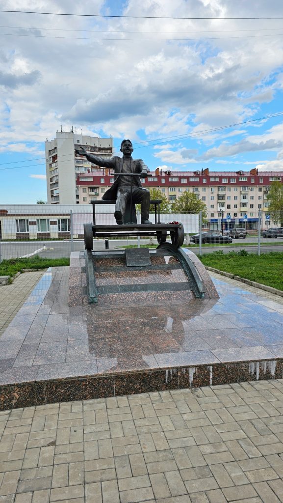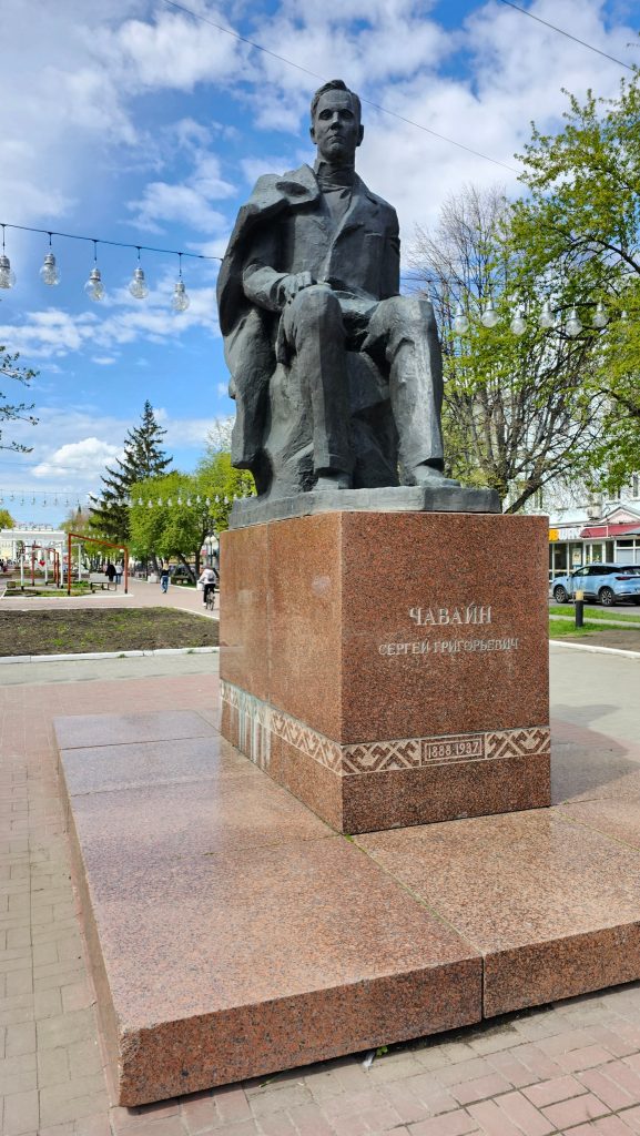 Местные называют его «Мустафа на дрезине» (2009, скульпторы Анатолий Ширнин, Сергей Яндубаев). И посвящен он замечательному марийскому артисту и поэту Йывану Кырле (1909–1943, настоящее имя — Кирилл Иванович Иванов).