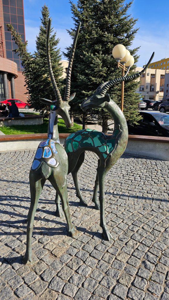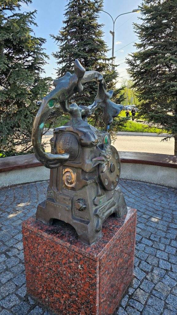 Рядом несколько жанровых скульптур — персонажей стихотворения Чуковского «Телефон».