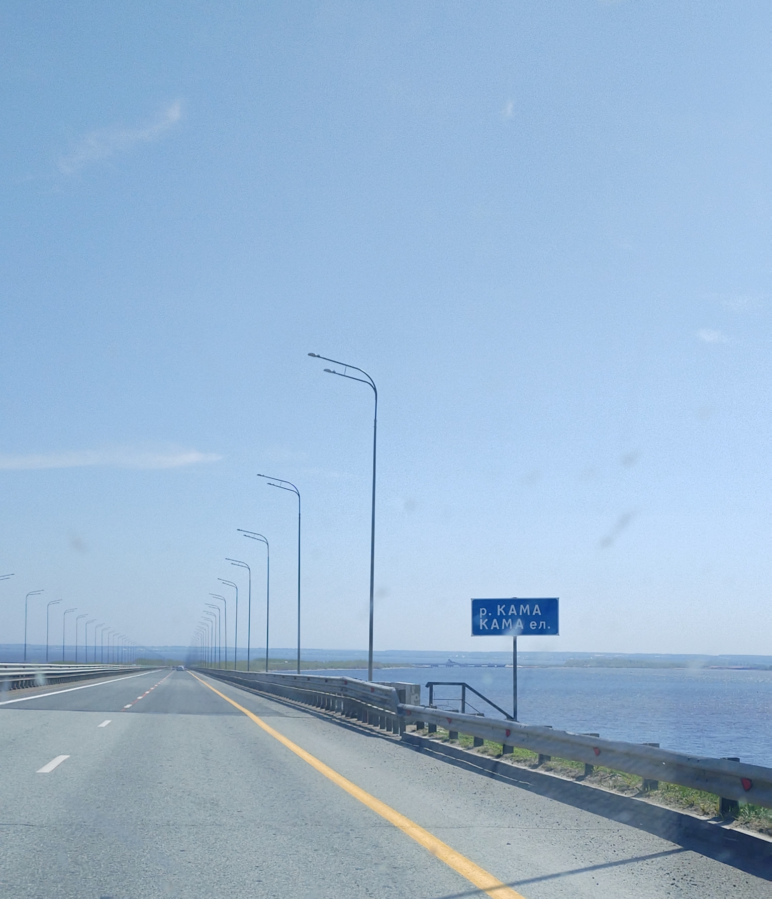 Маршрут проходит через реку Каму. Обязательно нужно остановиться и полюбоваться этой мощной рекой — самым большим притоком Волги.