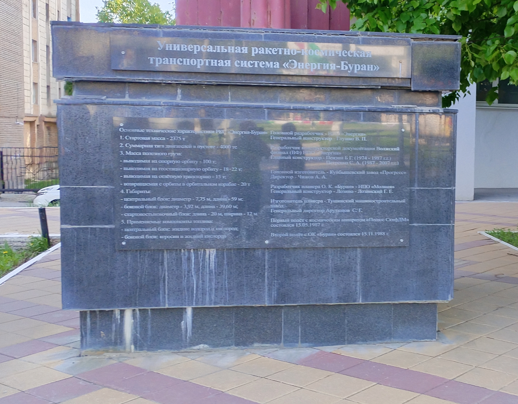 Памятник космическому кораблю «Энергия-Буран» был установлен около главного корпуса Самарского Государственного Аэрокосмического университета в 1997 году в честь 55-летия ВУЗа.