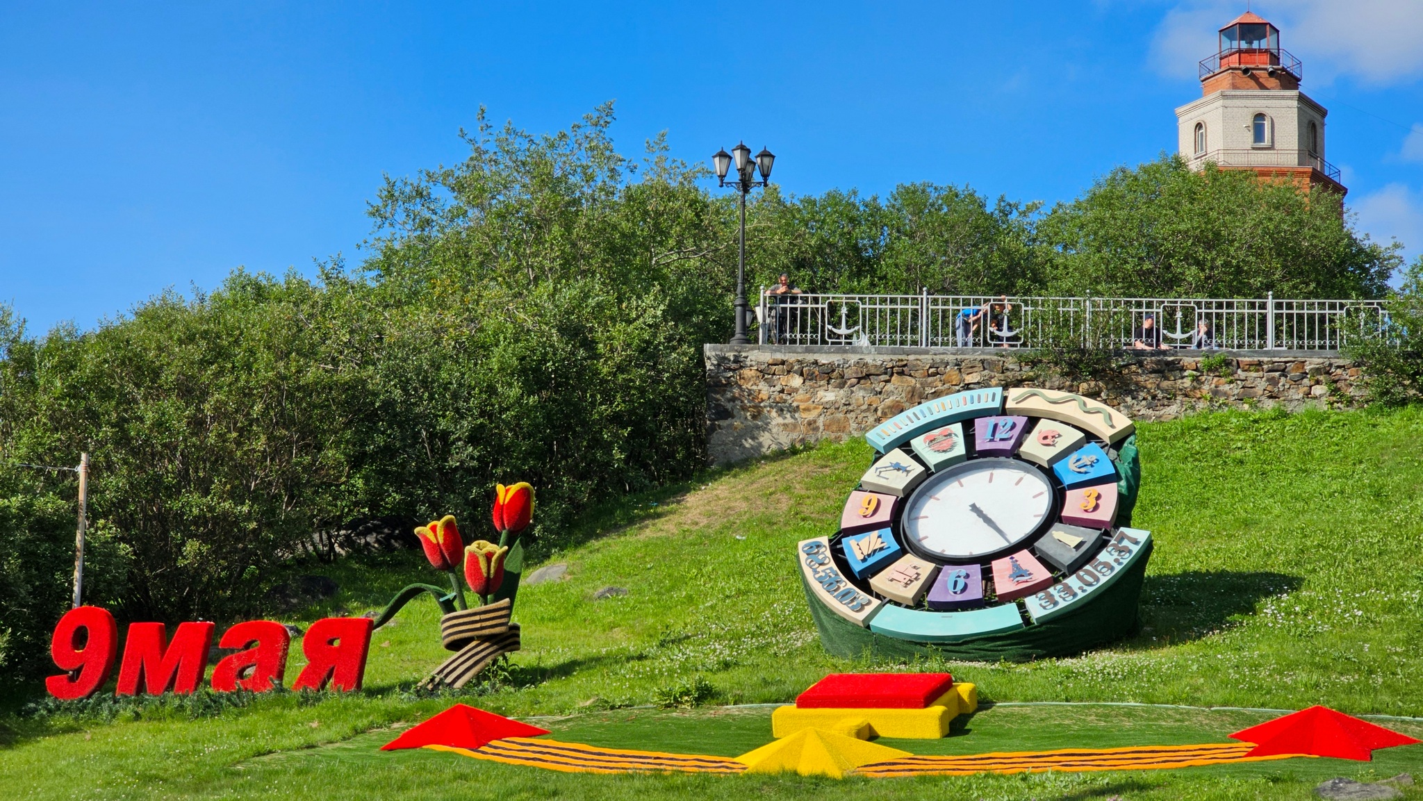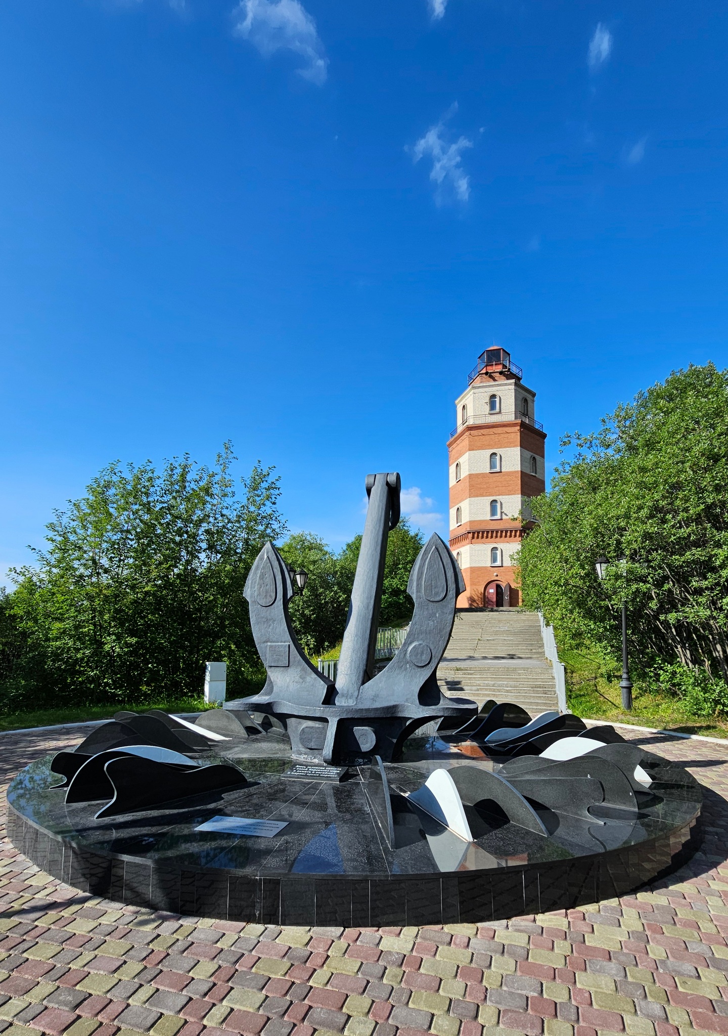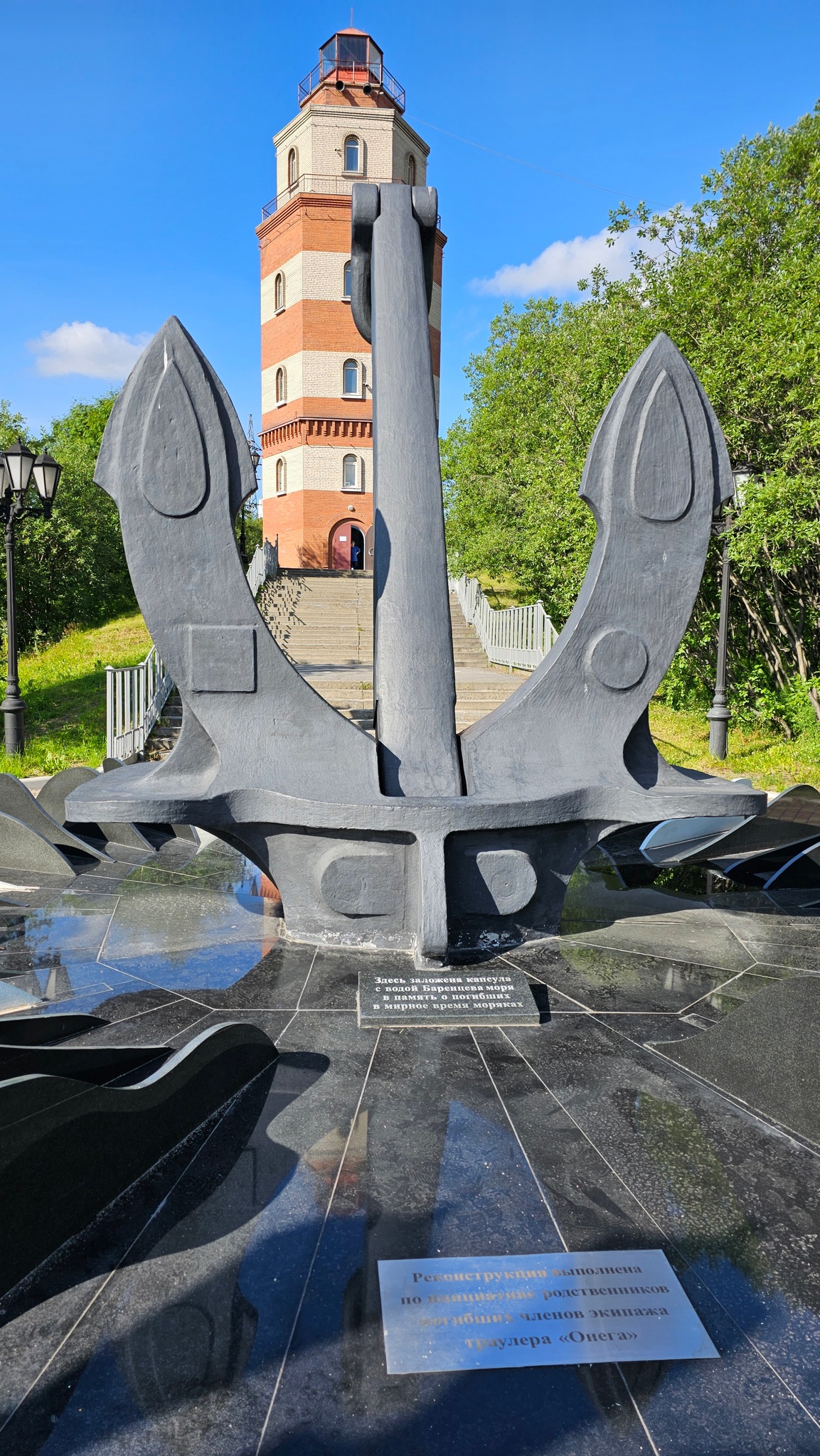 По обе стороны лестницы планируется разбить аллеи. Рядом с маяком установлен судовой якорь с заложенной под ним капсулой с морской водой.