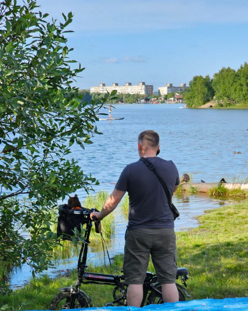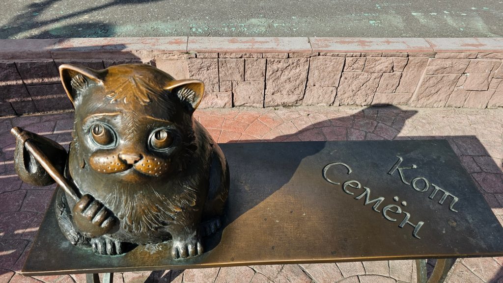 Рядом Семеновским озером на лавочке грустный кот Семен. Наверное, не покормили. Посетители парка, которых тоже пока не покормили, стоят в огромную очередь за шашлыками в кафе «У деда Семёна».