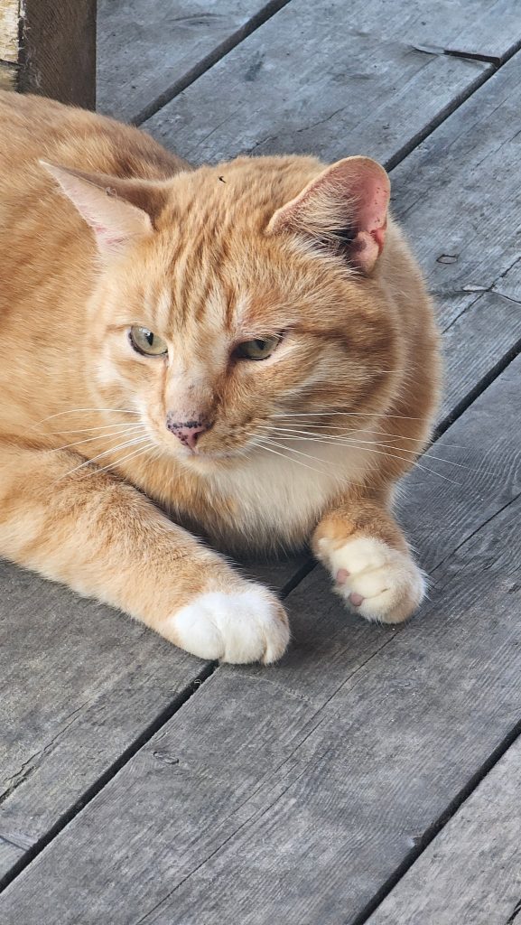 Рыжий товарищ срау пришел, как стали разматывать удочки. Привык, наверное, что всегда угощают немудрящим уловом.