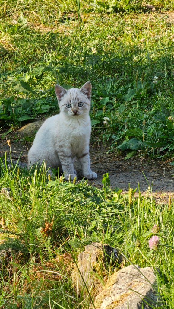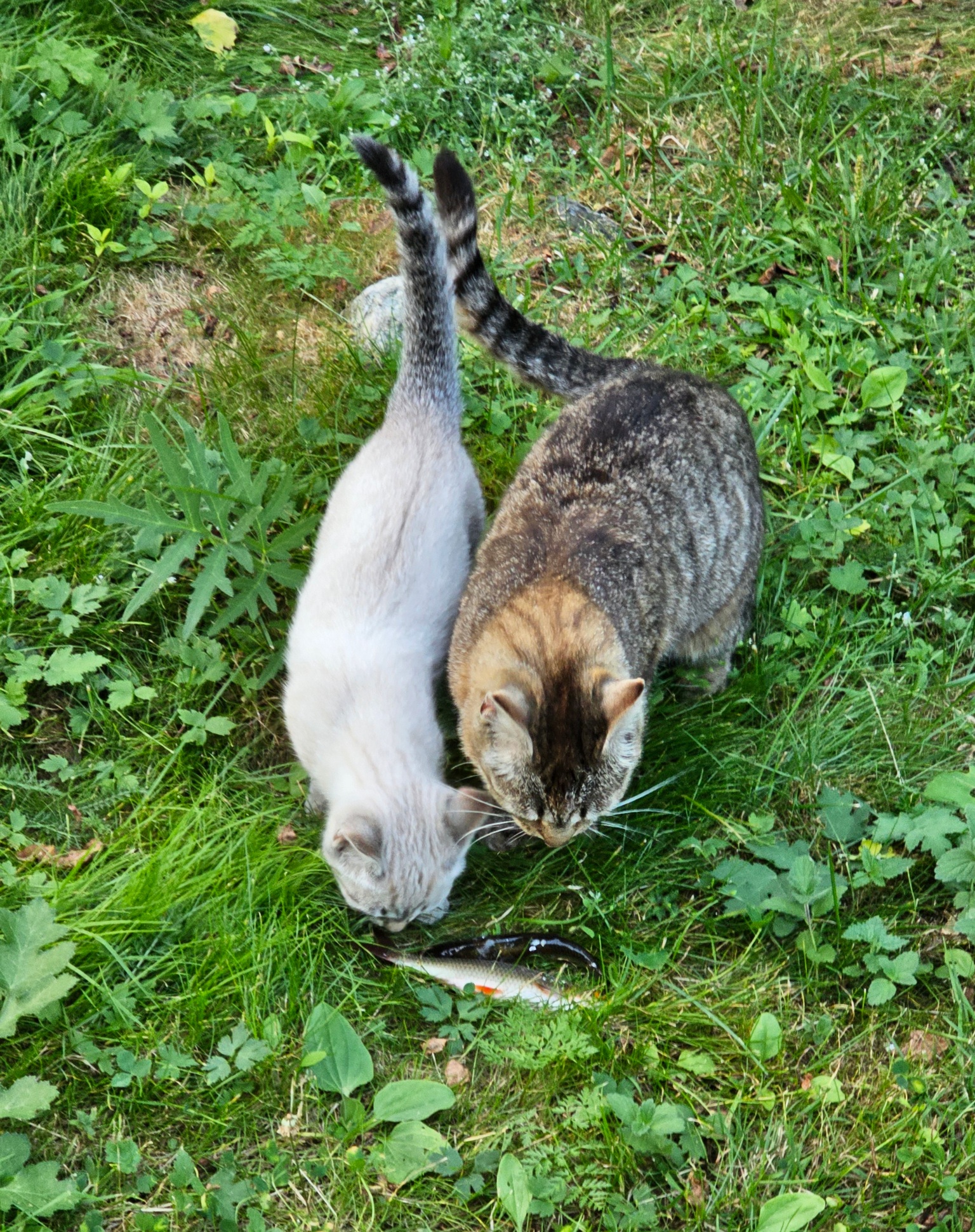 Котята еще не умеют есть такую рыбу. Только играют с ней.