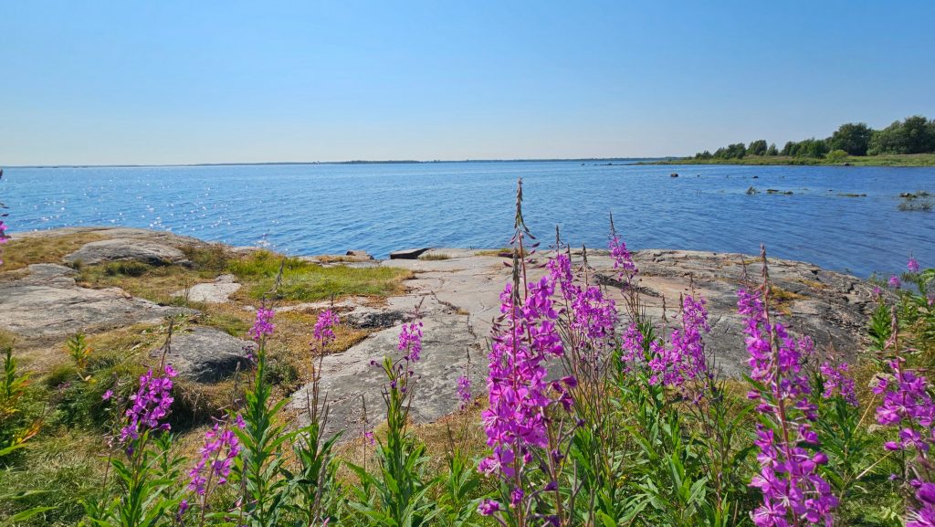 После столь бурной реки посмотрим на тихое Белое море. Точнее на Сорокскую губу Белого моря. Здесь летнее умиротворение, спокойствие. И даже пляж. В основном, загорают. Но кое-кто и купается.