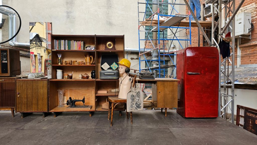 Галерея представляет собой узкий двор (улицу), уходящий в тупик, в котором расположена небольшая сцена для мероприятий. Напоминает собой кладовку 70-х годов. Вся «улица» украшена в стиле поп-арта: велосипеды на стенах, красная телефонная будка, виниловые пластинки и другие элементы.