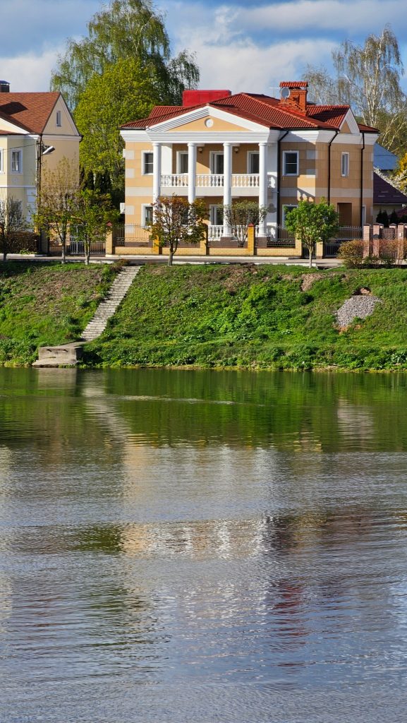 Бедные избушки на противоположном берегу.
