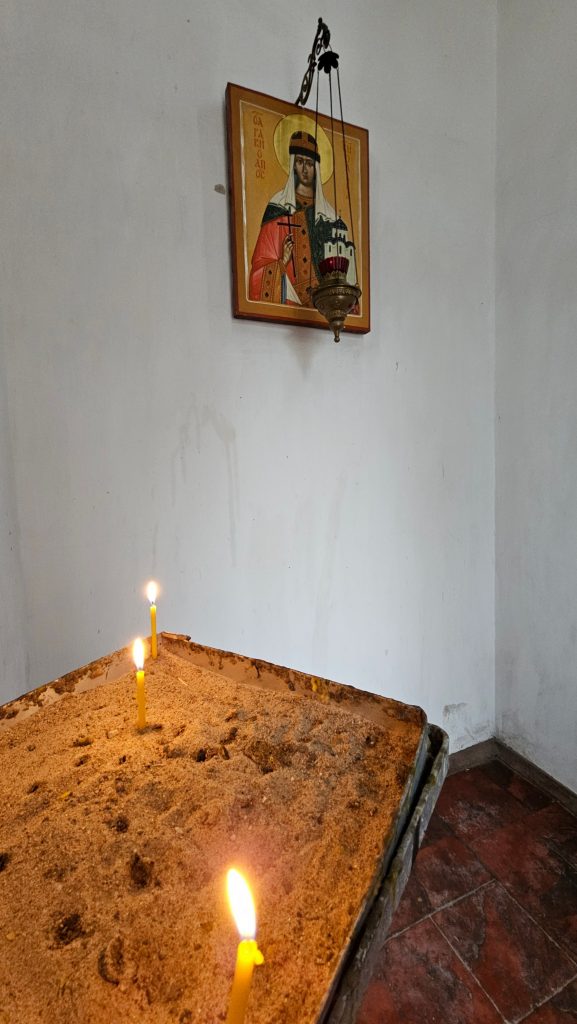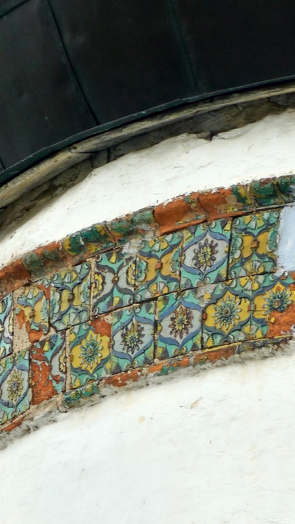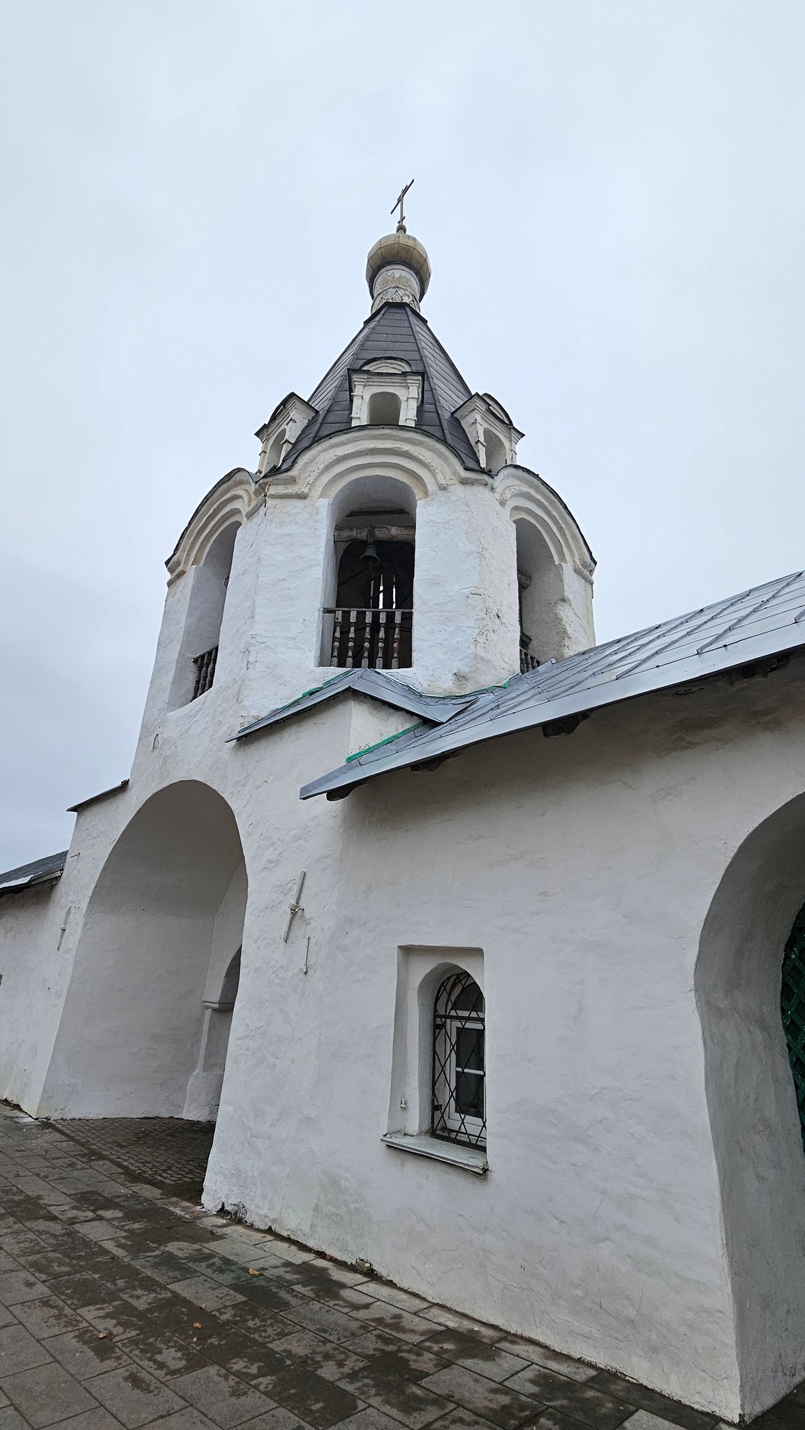 Первый раз заветили на куполе изразцовые украшения(изрядно потрепанные). Конечно в этом плане гораздо богаче декор в Николо-Вяжищском монастыре.