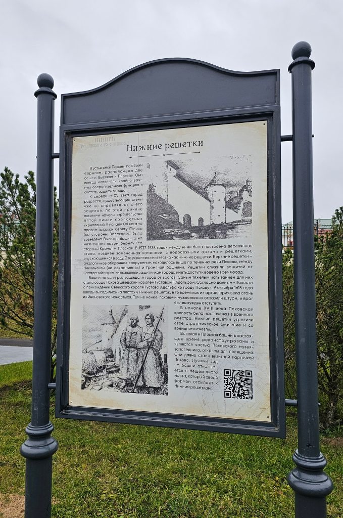 Эти решётки получили название Нижних, поскольку выше по течению Псковы, у подножия Гремячей горы, уже существовали другие, Верхние, — изначально деревянные, затем каменные. В 1631 году Нижние решётки также были перестроены в камне.