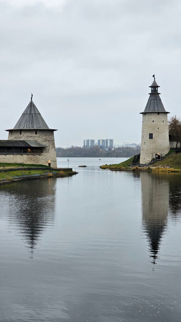 А вот и две башни в устье Псковы — Плоская и Высокая.