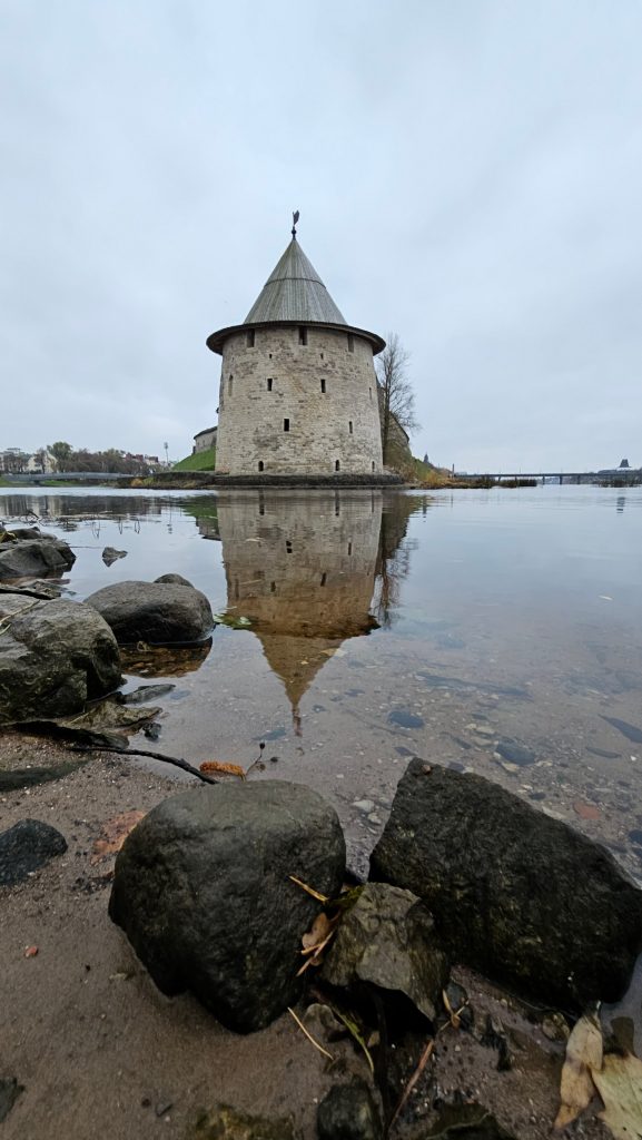 Спустимся на берег реки Великой у Высокой башни и намного пройдемся по берегу.