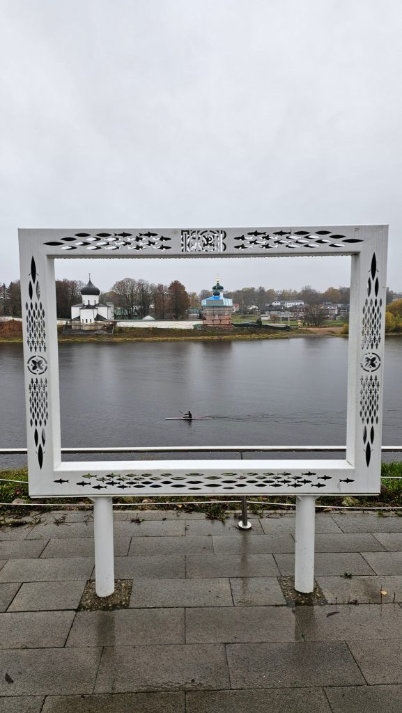 И еще — фоторамка. На «картине» — вид на Мирожский монастырь на другом берегу реки Великой.