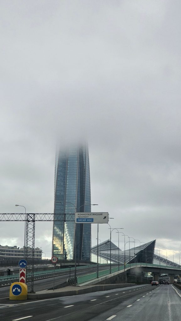 И еще раз — через две недели, уже на машине. И снова верхушка башни в облаках.