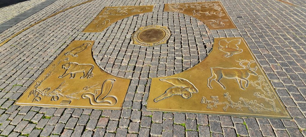 На постаменте установлена памятная доска с надписью на латинском языке:
