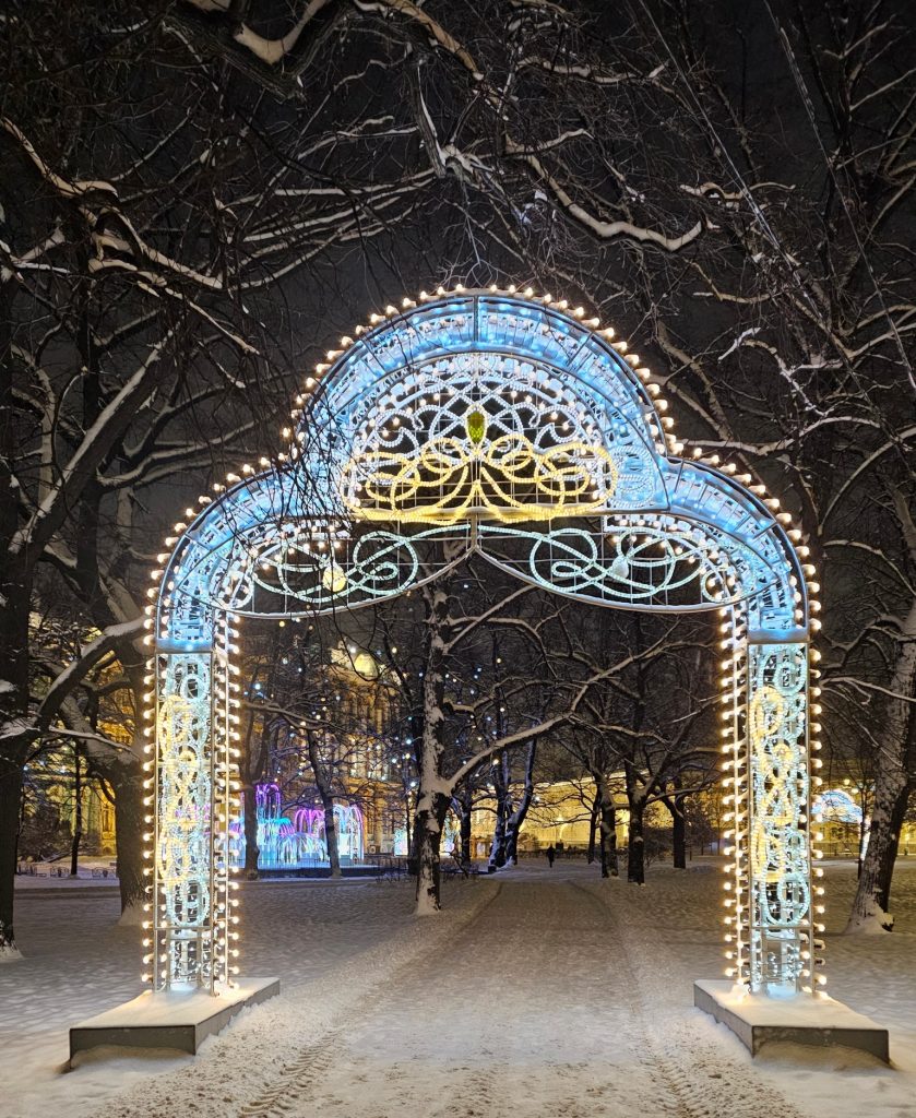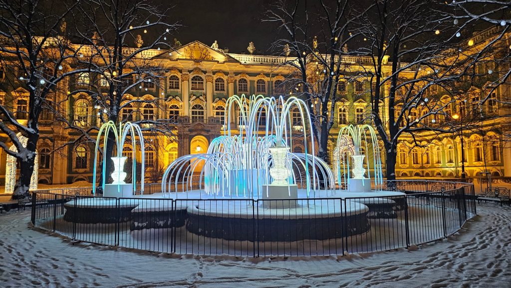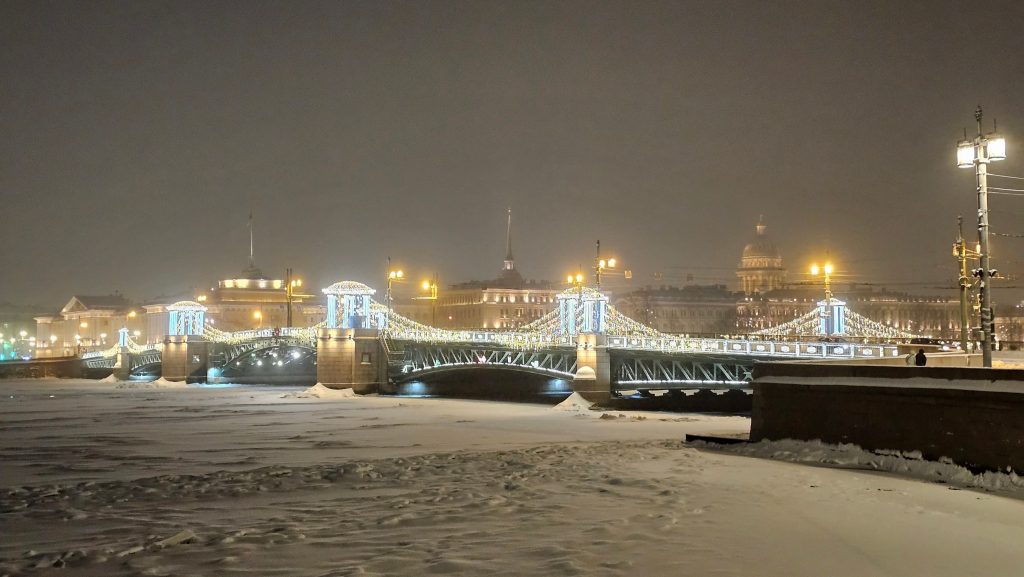 Вид на Дворцовый мост. Вид на Дворцовый мост. Светящаяся ротонда на Дворцовом мосту.Светящаяся арка на дороге к Дворцовой площади.Светящийся «фонтан» у Зимнего дворца.Дворцовая площадь.На Дворцовой площади. 2026.У Зимнего дворца.Александровская колонна на Дворцовой площади.Ёлка на Дворцовой площади.На Дворцовой площади. Арка Главного штаба. На Дворцовой площади. Арка Главного штаба. На Дворцовой площади. Арка Главного штаба. Новогодняя.У Дворцовой площади.Канал Грибоедова новогодний.