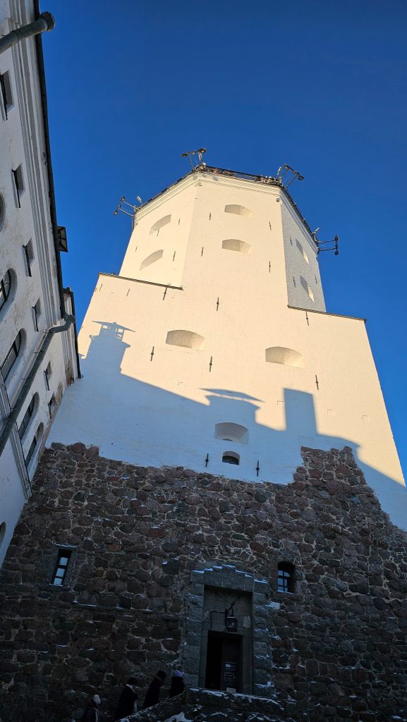 Ну что же, пришли на Замковый остров к башне, можно подняться на смотровую площадку. Дважды кже поднимались — в 2013 году (40 рублей) и в 2019 после реконструкции и со страшным подъемом (500 рублей с гидом и посещением музеев). Нынче — просто 500. Вход на остров- 100.