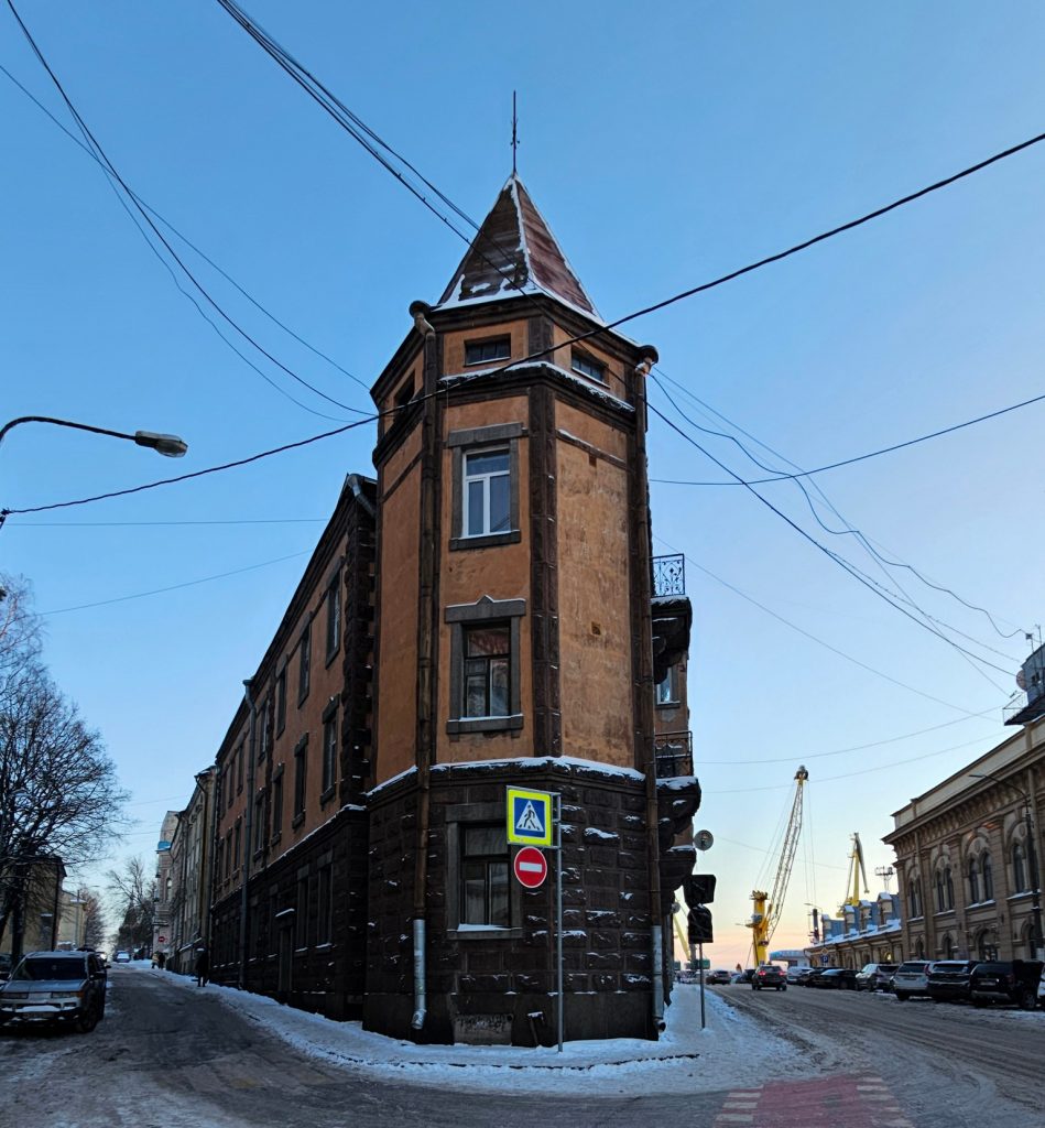 Расположенный на углу улиц Южный Вал и Выборгской в центре города Выборга трёхэтажный дом в духе неоготики с элементами неороманского стиля включён в перечень памятников архитектуры.